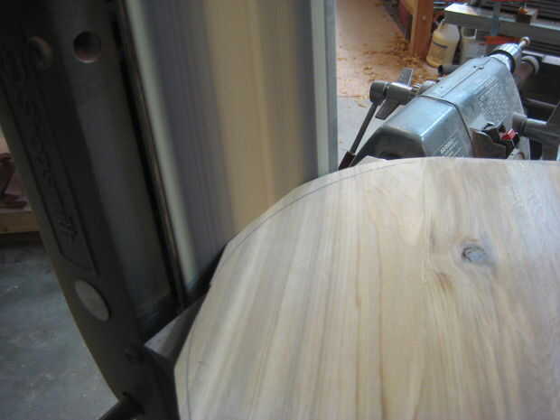 Usando una lijadora de banda estacionaria, mi esposa había quitada todo el material hasta la línea.  Si no tienes una herramienta como esta, tratar de ser tan preciso como sea posible durante la suave arena y corte a mano, será lo suficientemente cerca.