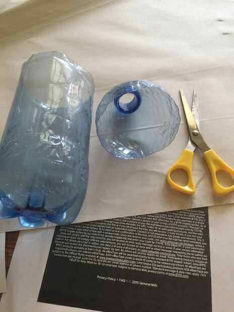 Se puede utilizar una tijera o un cuchillo porque cortar una botella de plástico es difícil tan cortados corte la parte de la tapa