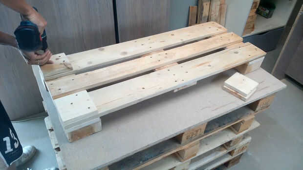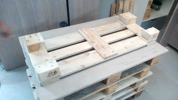 De algunas sobras de madera de palet, 4 piernas y había atornillado en las esquinas.
