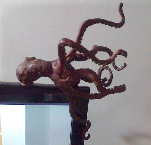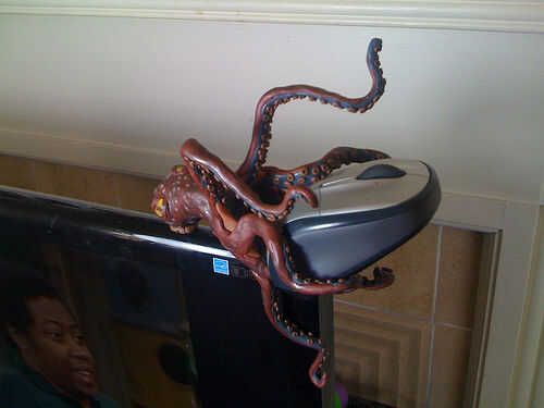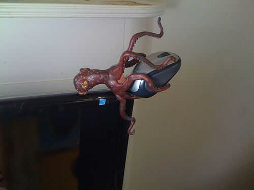 Quería que se vea interesante y mantener diferentes modelos en caso de que este ratón se rompe. Tentáculos de pulpo hacen un gran trabajo de mantener las cosas de forma extraña. Arcilla del polímero puede hacer un pulpo de aspecto agradable, pero estrictamente utilizando arcilla polimérica no deja los tentáculos se muy buen agarre, y el ratón fácilmente podría sacar si no es colocado correctamente. Entonces, por supuesto, es el problema de colocar el pulpo en una superficie.