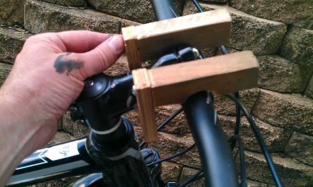 El lugar y una barra superior en posición sobre la bicicleta hasta que la barra superior encuentra horizontalmente cuando la parte inferior de la U es todo el camino contra el cuello. Marque donde el te y bar encuentro. Sujete la barra superior a la U en ese punto.