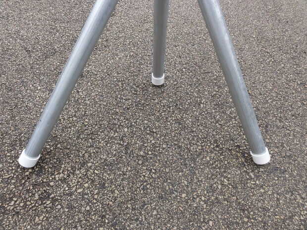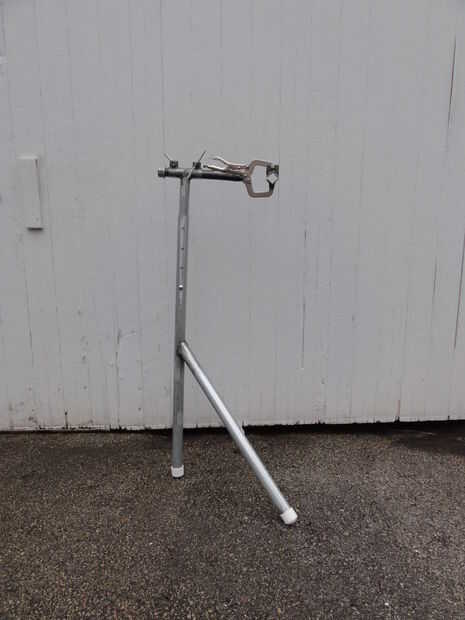 Cortar una longitud de 4' para el puesto de base. y (5) 3/8 orificios aproximadamente 3" aparte cerca de la parte superior del post. Los agujeros permiten ajuste de altura del poste de soporte de abrazadera. I luego corte otras dos piezas de 30" de largo para las piernas. El proyecto de dos patas al frente a unos 45 grados a cada lado. Se trataba de corte y la tierra para adaptarse antes de ser soldado con autógena en el lugar.