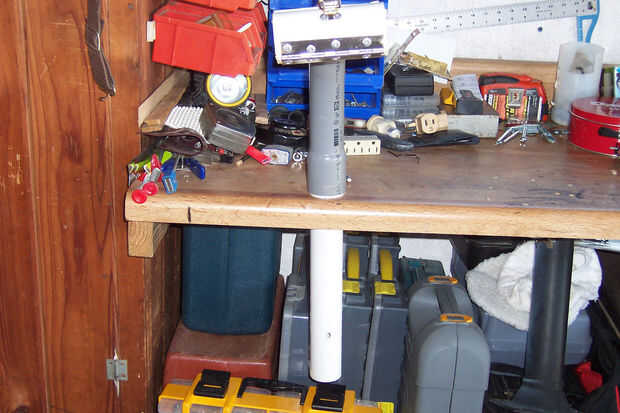 Paso 1: Perforar agujero de mesa madera para caber firmemente 1.5" PVC (uso adicional bloques de madera debajo de la parte superior si es necesario).