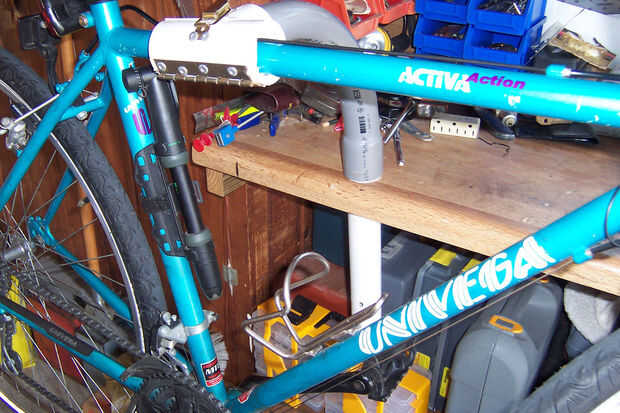 Soporte de reparación de bicicleta en Banco de trabajo. (2 / 6 paso)