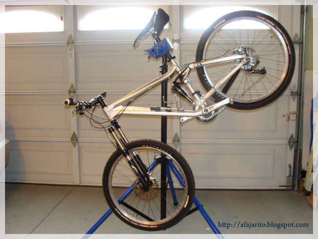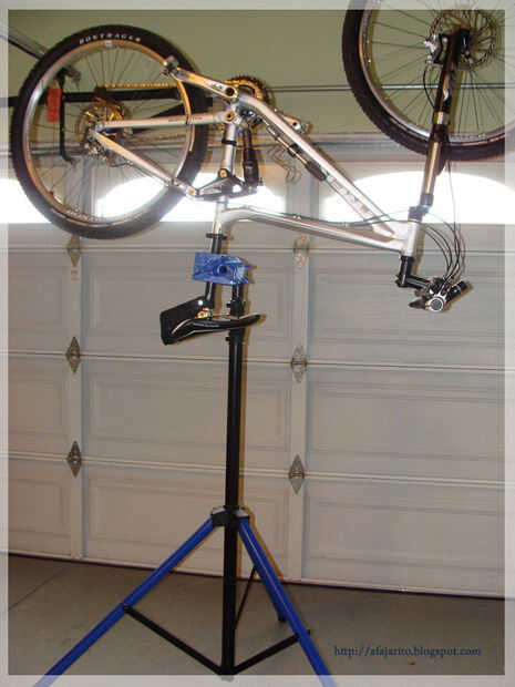 Recientemente publiqué un "Instructable" para un barato bricolaje bicicleta reparación soporte que se puede montar en tu terraza o cualquier estación de trabajo robusta. (Lo puedes encontrar aquí--> Pero después mirando para una hora o así, d