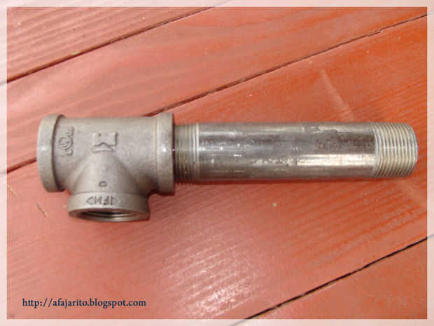 1. con una llave de tubo, del hilo de rosca de la tubería de diámetro de 1" a 1" galvanizada Tee como en la imagen a continuación, utilice loctite rojo para sujetarla permanentemente.