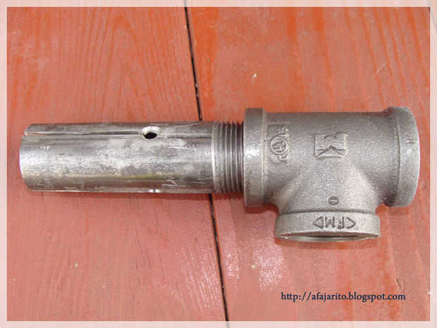 4. la pieza de arriba con el extremo opuesto de la Tee de 1" del hilo de rosca, utilice loctite rojo para sujetarla permanentemente.