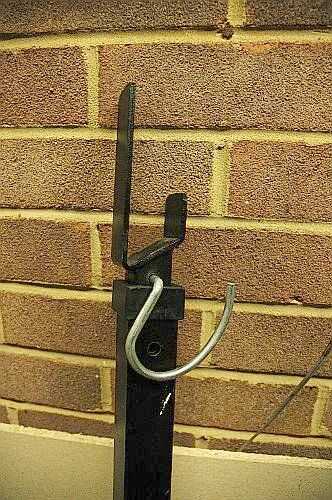 el soporte de bici típica es demasiado caro para el uso de una o dos veces al año.Mi sostenedor de bicicleta ytres ojos de tornillo ytres ganchos en "S" yuna pared de garaje parecen funcionar bien.