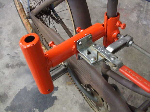 PIC 3 cuando configure las mordazas. Deje que las mitades del tubo se superponen un poco como los dientes en el frente. de esta manera permitirá el más cerca apretar en los marcos de bicicletas más pequeñas. Esto tendrá que ajustar según el marco de la bici se trabaja con. Dentro de este área necesita un forro de goma para no rallar el acabado de su bicicleta de la abrazadera.