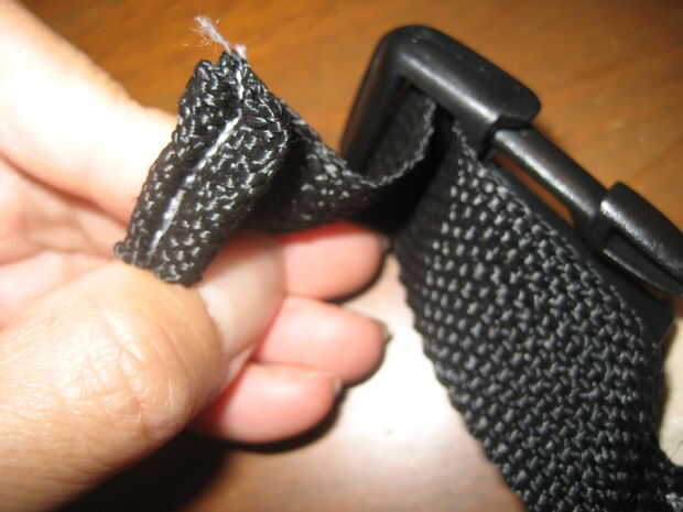 Fijar los ganchos a las correas, asegurándose de que están emparejados correctamente (es decir, un par para el conjunto de la izquierda de las correas y un par para el conjunto adecuado de correas). Luego plegar y coser los extremos de las correas para que el clip no se sale la correa.