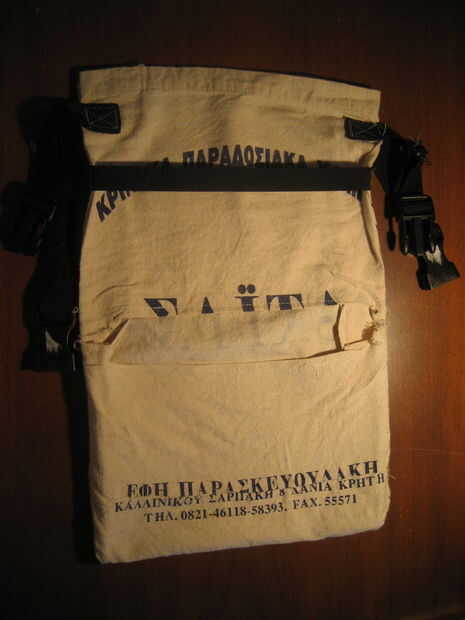 Doblar una tira por la mitad y coser donde la tapa es la parte superior de la bolsa de lona.