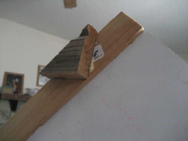 Suerte quiso que, tenía un pedazo cuadrado de madera que corté por la mitad para hacer 2 triángulos.