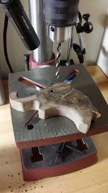 Use un taladro de 7/32 broca para hacer los ojos del elefante. Perforar todo el camino en una sola pasada. Cotizado algunos contornos de oreja con la herramienta rotatoria para añadir un carácter extra.