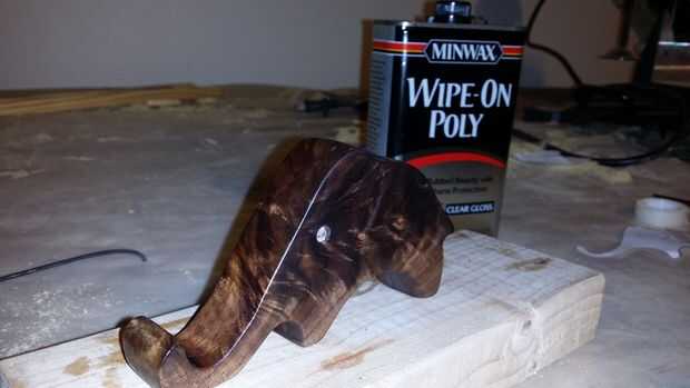 Utilice un trapo para limpiar en poliuretano y deje que se seque. Aplique dos capas de poliuretano transparente y lijar ligeramente con grano 320 entre capas. Use un q-Tip para aplicar acabado claro dentro del agujero del ojo.
