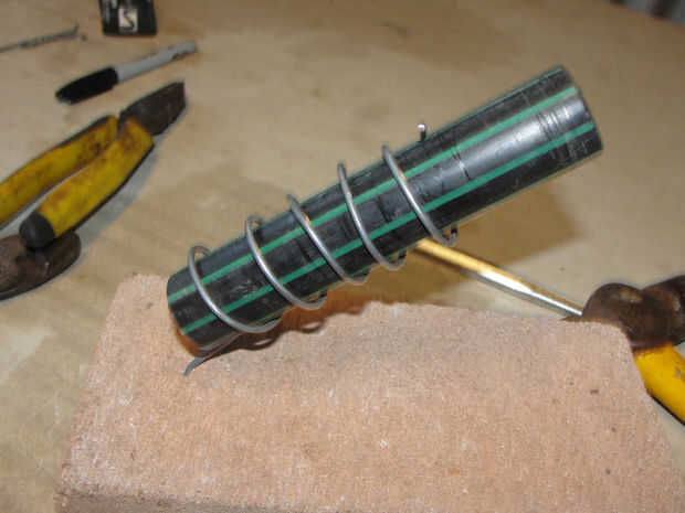 Luego tomar la pieza de tubo, madera o lo que tiene y tuerza el alambre alrededor de él.