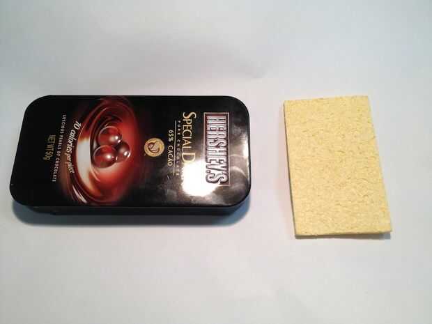 Me gusta usar una humedecida esponja también limpiar mi plancha mientras trabajo. Soportes de soldador barato (disponible en EBAY por unos $4,00) tienen una muesca para la esponja pero no hay manera de fijarla en posición. Pedazos de esponja de reemp