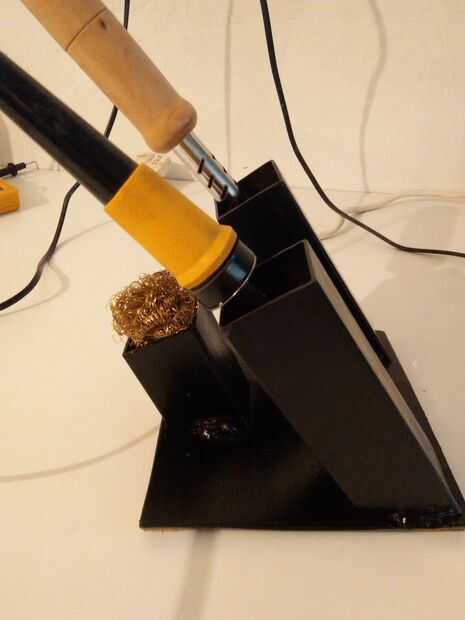 es un soporte de soldador que construí por menos de $10.  Llevará a cabo varios soldadores o planchas del desoldador y apoya la plancha por el mango, para que no se desperdicia el calor de la plancha calentando para arriba el soporte de soldador sí m