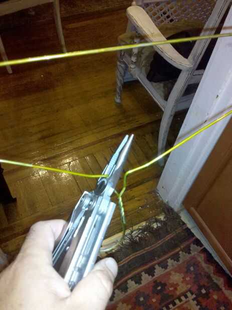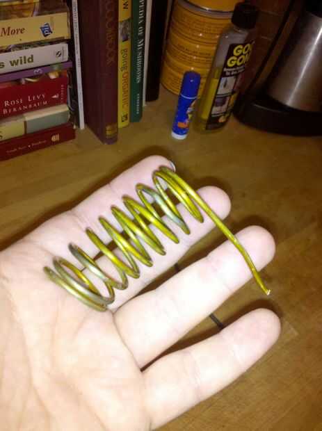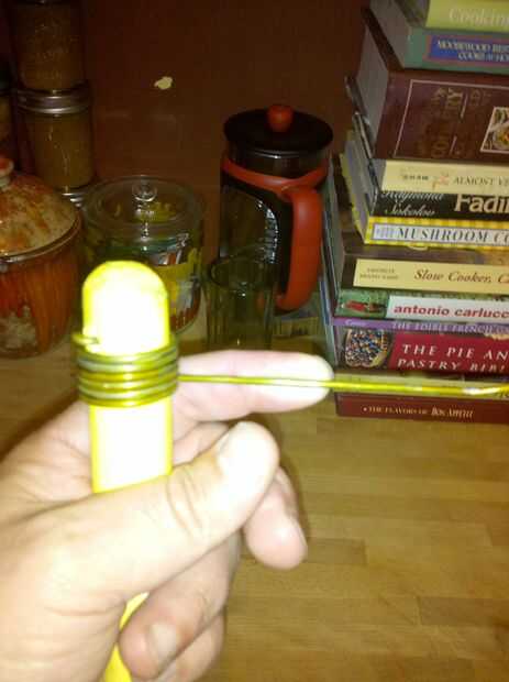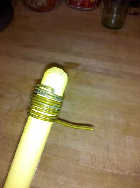 Taladre un agujero en un palo de escoba o utilice el agujero existente de otra cosa que hizo. Corte su suspensión y enderezar hacia fuera. Coloque un extremo en el orificio hecho en el palo de escoba y con cuidado lo enrolla en una bobina.