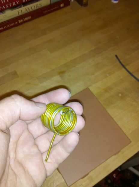 dejar un par de pulgadas de la "cola" y el cable en el agujero del clip. La cola será cómo montar la bobina en el azulejo y la bobina se estiró en el "soporte" para el soldador.