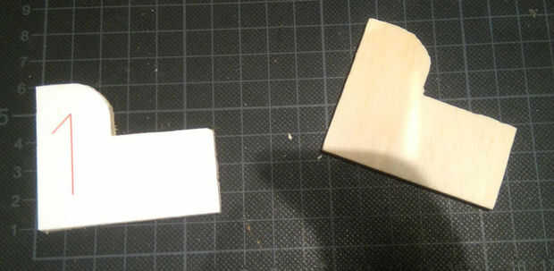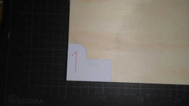 Después de haber cortado la pieza llevarlo y usarlo como un temlate para la segunda pieza si no desea utilizar la madera como una plantilla simplemente cortar dos plantillas y repita este paso.