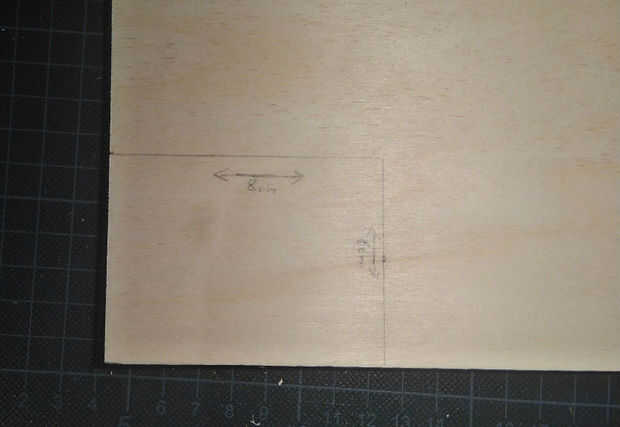 Gire la pieza de madera contrachapada y marcar un rectángulo que mide 8 por 6 cm.
