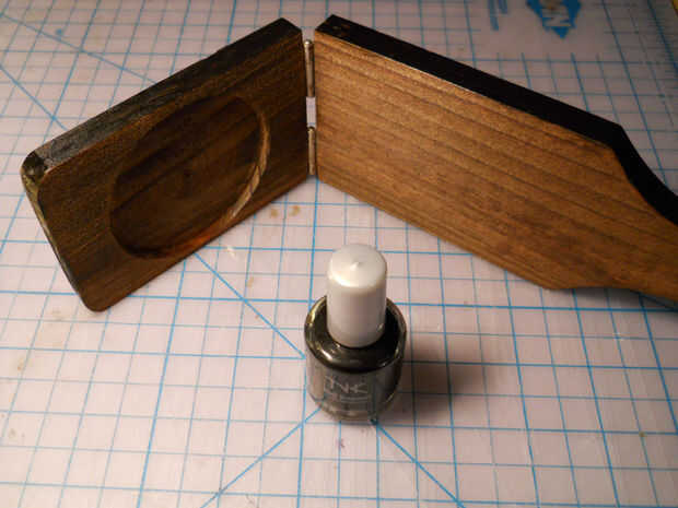 Decidí añadir este detalle lacado negro para hacer el soporte coincida con los orificios negro brillante en la radio vintage que he utilizado para mi Decopunk el aparejo de iPod.
