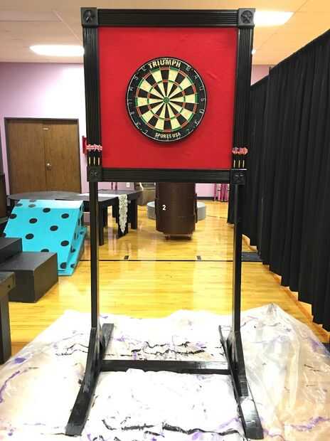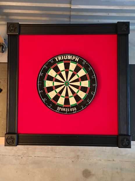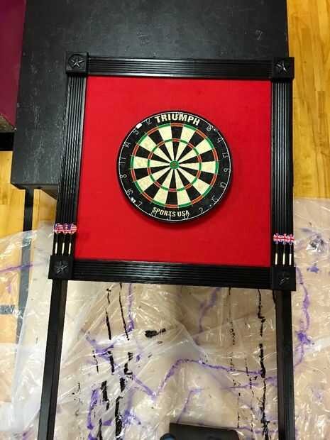 Ok, antes que colocar las piernas, fui por delante y tomó dos largas cuerdas, se extendía diagonalmente para hacer una x de cada esquina del OSB. Donde se cruzan es el centro del tablero. Esto es donde se instalará el hardware del tablero de dardos. Debe venir con el tablero y es bastante autoexplicativo. Lo único que no era las tres cosas de parachoques de goma negro. Me di cuenta de que debían ser repartidos alrededor del círculo de la Diana para evitar que se alabee el tornillo del centro. Realmente lo hizo caber comodamente!