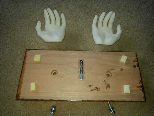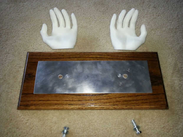 Para ser creativo usé un pedazo grueso de 1/8 de aluminio tenía y perforados hacia fuera para el espaciado correcto de las manos que aparte basado en su tablero largo. También he añadido 2 tornillos avellanados para sostener la placa de aluminio a la Junta, no es realmente necesaria, pero mantiene de desplazamiento.