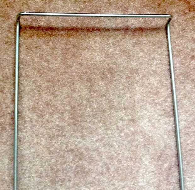 Fácil hacer bricolaje iPad soporte de TabletPaso 1:Elementos necesarios:-gancho de alambre-alicates (opcionales)Paso 2:Primero quiere agarrar suspensión en lados izquierdo y derecho y dóblelo hacia abajo (ver imagen).Paso 3:Tomar unos alicates y dobl