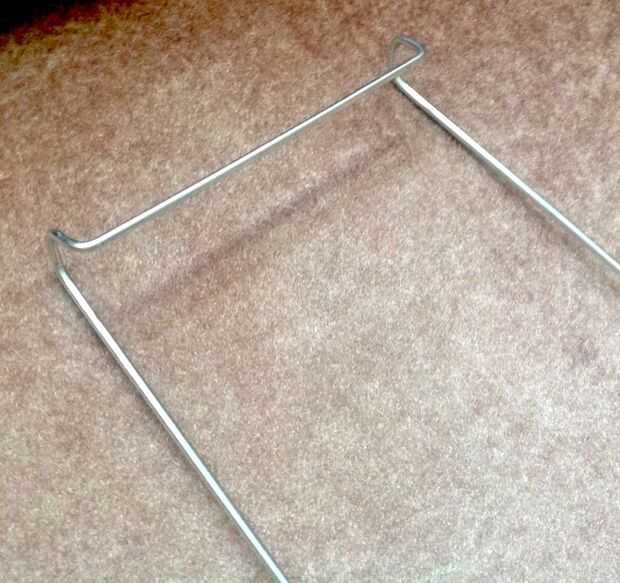 Fácil hacer bricolaje iPad soporte de TabletPaso 1:Elementos necesarios:-gancho de alambre-alicates (opcionales)Paso 2:Primero quiere agarrar suspensión en lados izquierdo y derecho y dóblelo hacia abajo (ver imagen).Paso 3:Tomar unos alicates y dobl