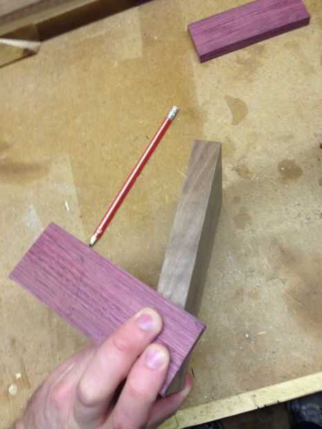 • Marque el ángulo de la nuez en el corazón de púrpura donde uniría el cuerpo principal del soporte.