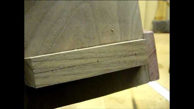 • Los agujeros para el estante y las piernas del corazón púrpura son diferentes profundidades usé negro para marcar la profundidad de los tacos de corazón púrpura y la cinta azul para las clavijas del estante.
