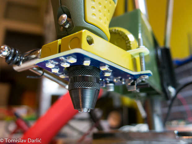 cuando he empezado a grabar mi pcb personalizado sentí la necesidad de mejorar la técnica de perforación de circuito. Perforé mis primeros circuitos a mano libre con mi Dremel, pero a pesar de que es muy rápido, está sujeto a errores, y también es pe