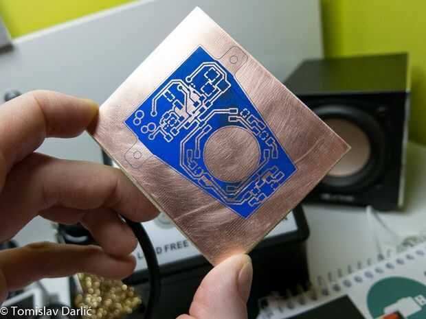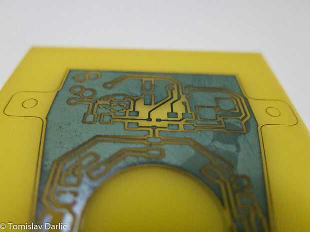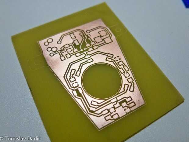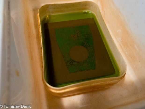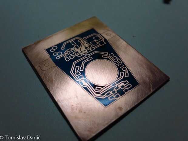 Cuando termines con la plancha ponen la Junta bajo un chorro de agua fría y la cáscara del papel prensa-n-peel. Patrón restantes debe ser limpias y afiladas. Si hay errores se necesita limpiar la placa con acetona para quitar el toner y el hierro recién impresa patrón otra vez.