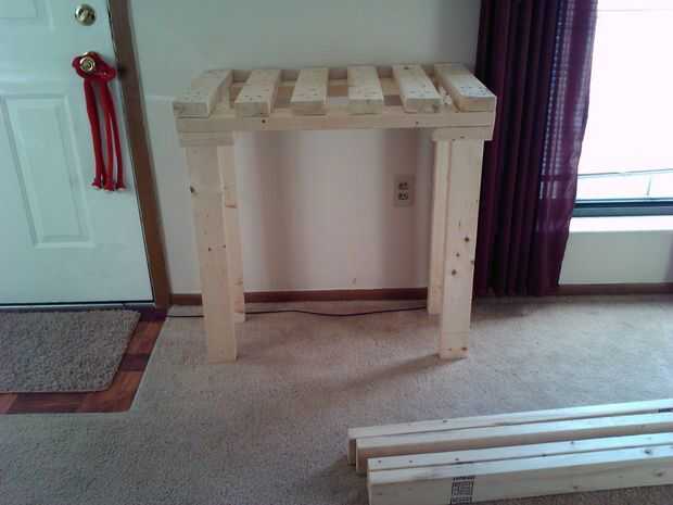 4. Sujete la parte superior (plano) tabla Cruz pedazos (la mesa) con clavos