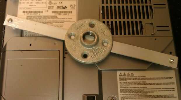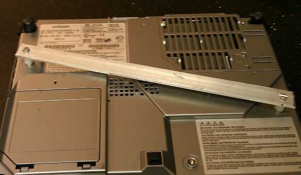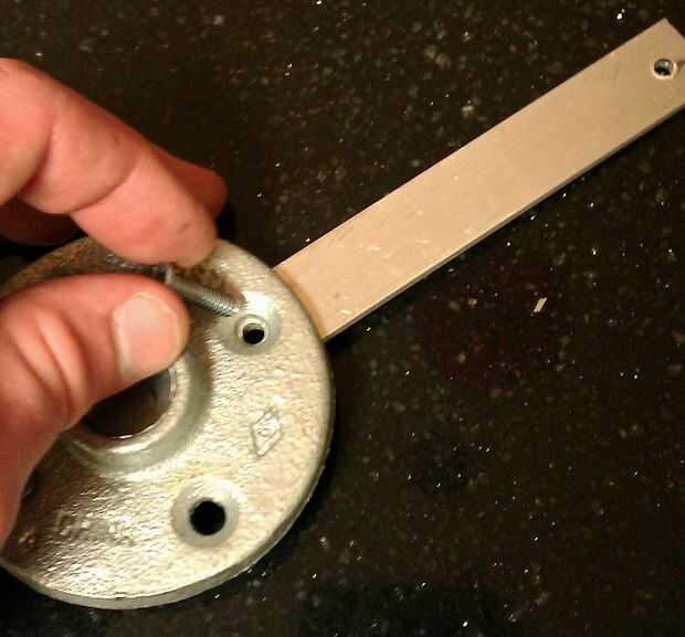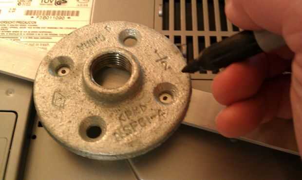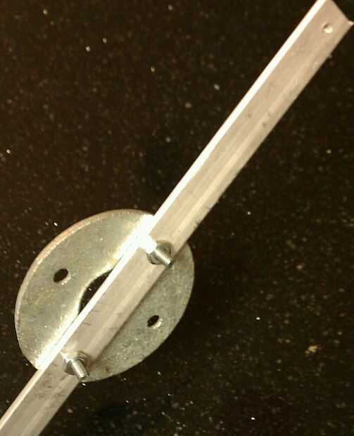 Coloque la brida en la parte superior la tira de aluminio por lo que la brida se centra en el proyector y la tira de aluminio es visible a través de dos de los orificios. Luego, marque la tira de aluminio en el centro de los dos orificios. Perfore un agujero a través de cada una de estas dos marcas.
