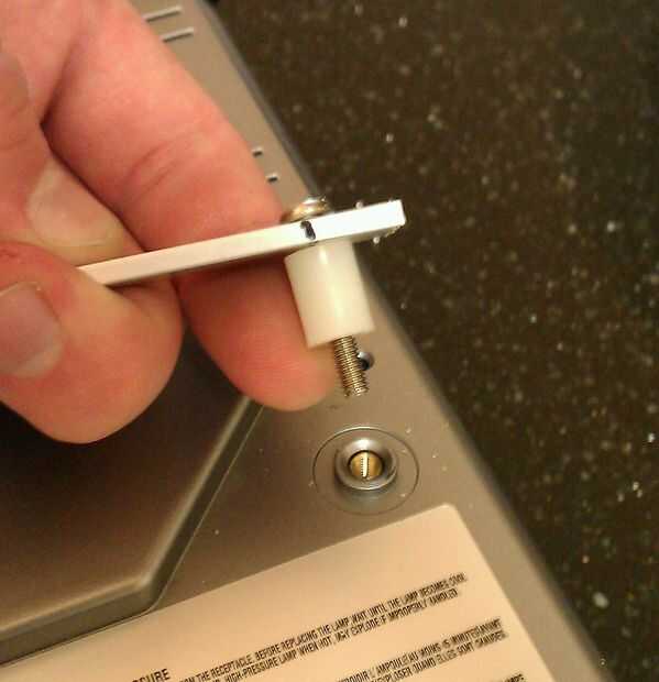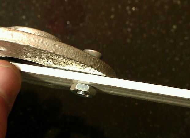 Desprenda la tira del proyector. Lugar # dos 10 tornillos a través de los agujeros de la brida y sus correspondientes agujeros en la tira. Apriete una tuerca en cada tornillo.