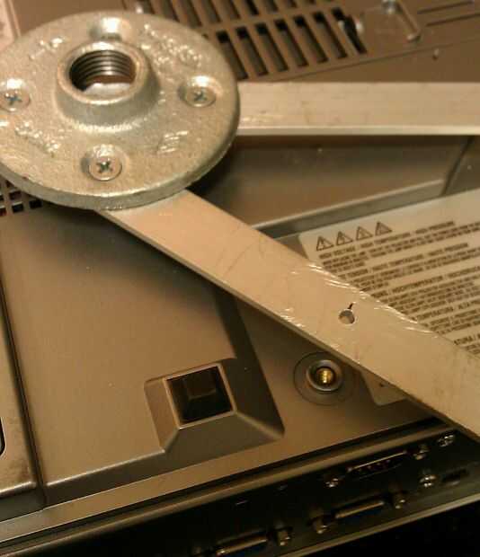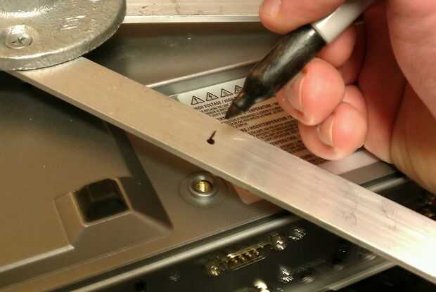 Utilice el tornillo #10 como un pivote para marcar dónde hacer el tercer agujero, similar al paso 2. Taladre un agujero del tercer como está marcado.