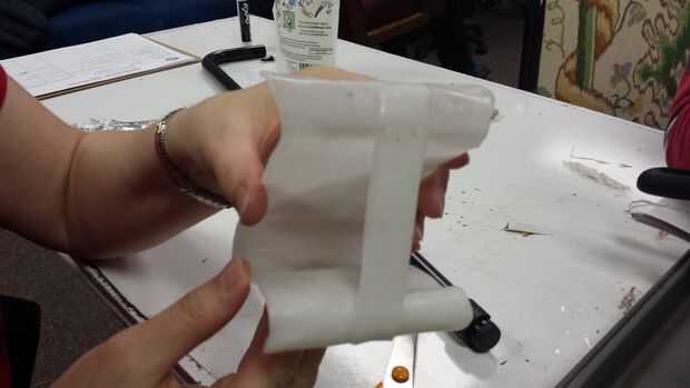 Usted puede encontrar que su stand necesita apoyo extra--en el ejemplo anterior, una barra transversal fue agregada para la estabilidad. Sumerja el travesaño y luego el soporte en el agua caliente, luego pellizcar juntos para formar un buen vínculo. La forma puede ser suavizada por volver a sumergir en el agua caliente para ablandar primero.
