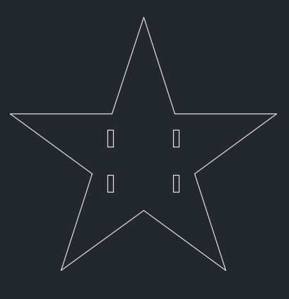 Dibuja una estrella en AutoCAD. Es mejor tener todos los lados de la estrella de la misma longitud. Los rectángulos pequeños son de la misma medida como las clavijas en los pies de Homero.