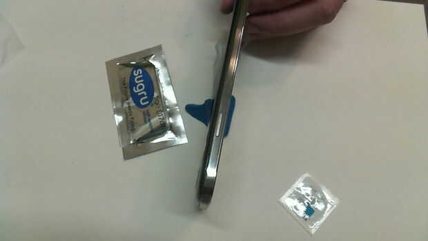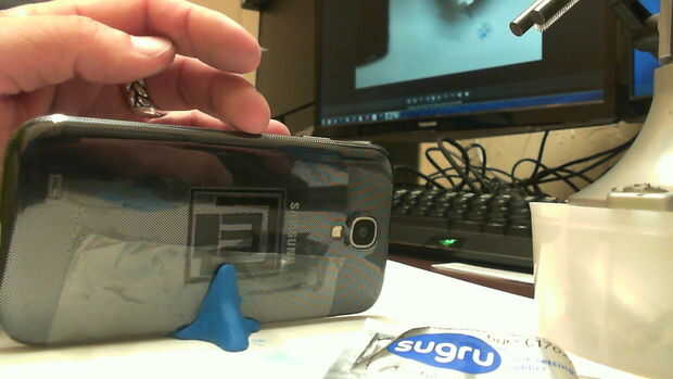 Tomar el Sugru apagado el teléfono en este paso solamente para mostrar la forma general que debe tener todo el teléfono en este momento. Usted realmente no necesita despegar a menos que seas un stickler sobre siguiendo los pasos exactamente como se muestra.