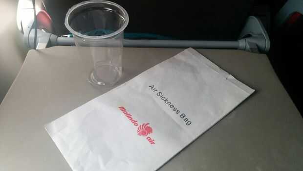 Los pescados en el bolsillo del asiento para el Bolso de aire de la enfermedad. Busca frenéticamente en caso desee le freak Co pasajero.