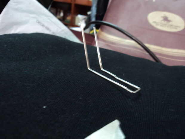 Tuerza el clip con los alicates o pinzas hasta llegar este formulario. La regla para medir el tamaño de las piezas, elegí 1cm por la parte corta y el resto que lo hice a ojo. Además, gire el ángulo a su gusto.