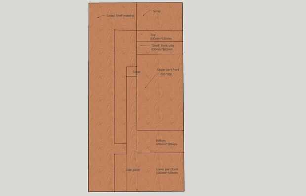 Es una jugada inteligente para planear los cortes en la hoja, para que pueda obtener como trozos de madera de desecho como sea posible para otros proyectos más adelante. En la foto adjuntada he marcado aproximadamente Cómo hice mis cortes.