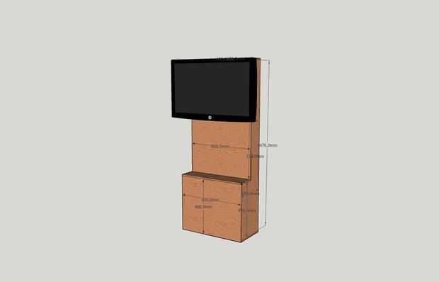 Un problema que tuve a dirección en mi sketch fue el punto de equilibrio del stand. Mi primer "stand" fue la manera de pesada superior, y la TV casi con punta en la cama donde estaba anclado. Lo único que manteniéndolo vertical era la alfombra en el piso que proporciona fricción sujeta las piernas en su lugar. Fue por eso que decidí mover el soporte más cercano al centro como sea posible y todavía tiene cierto margen en la parte posterior se. El soporte es de 30cm de profundidad, pero no sienten como que podrían inclinar. Si usted tiene una pantalla más grande entonces mi 32" y es ansioso puede volcarse, agregue un cierto peso en la parte inferior o montar algunos patas de apoyo en la parte delantera.
