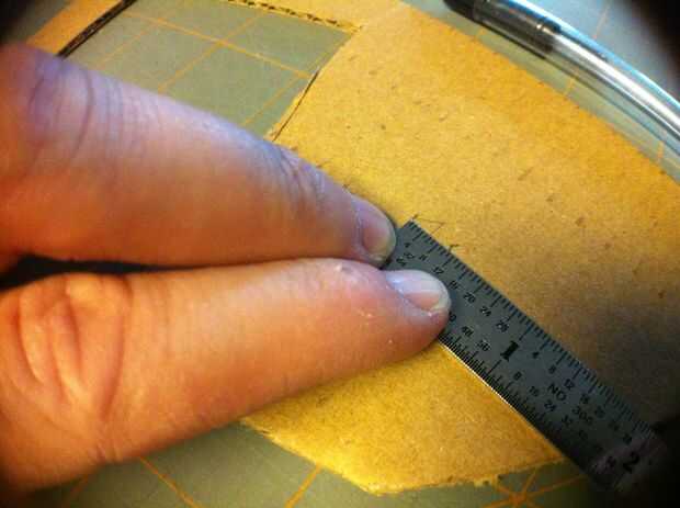 En la plantilla, hay una línea marcada "Cortar línea central".  Esta línea de transferencia para cada una de sus piezas.  Esta es la línea central de la ranura que usted cortará.  Después de dibujar la línea, medir la mitad de espesor que se determinó en el paso anterior a ambos lados de la línea, por lo que le viento con una ranura del mismo grosor que la pila de cartón.