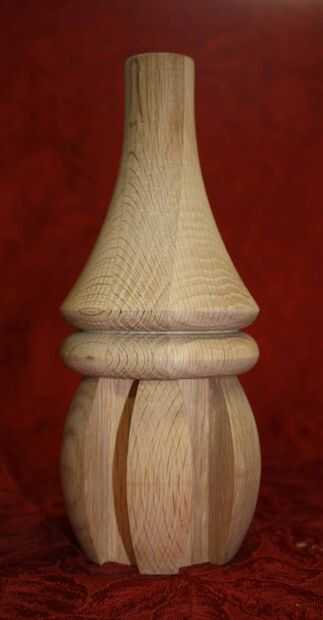 La parte superior e inferior montantes son idénticos a la media con un anillo central para más detalles. Todos los componentes del estante de la capa están conectadas por una varilla de la SS a través de sus centros.