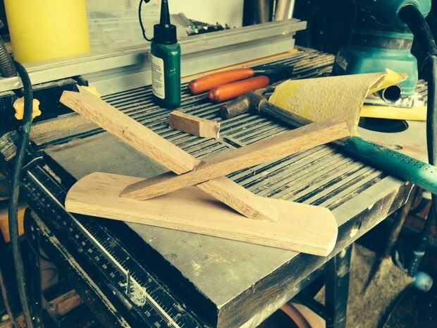 Ahora que todo se corta en su lugar es hora de pegar y alfileres. Tener realmente cuidado con las clavijas como pueden dividir fácilmente los pedazos finos. Para ser honesto debe aceptar simplemente pegando.