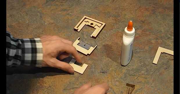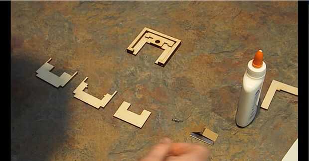 1.) basado mi diseño en una hoja de afeitar y 1/8 madera contrachapada piezas rectas que se podrían apilar para crear las dos secciones de la herramienta de corte.