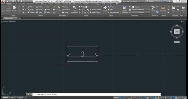 2.) primer diseño elaborar tus piezas en Autocad para hacer un laser corte archivo. Entonces para asegurarse de que su diseño funciona en 3 dimensiones, tomar el archivo de Autocad y abrir en Rhinoceros y rápidamente del modelo para ver que no hay ningún problema. La segunda imagen es el lase completa corte de archivo que se utiliza para cortar madera contrachapada de 1/8".